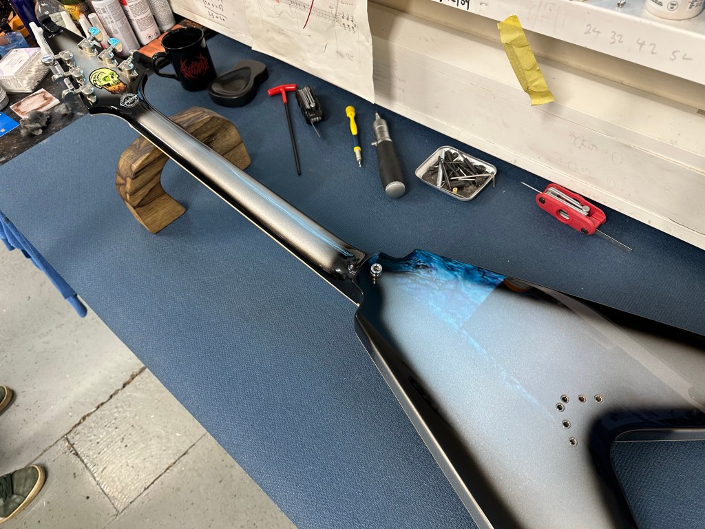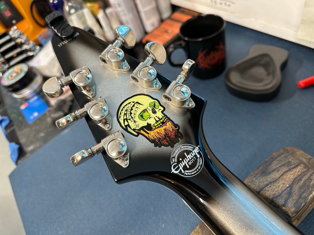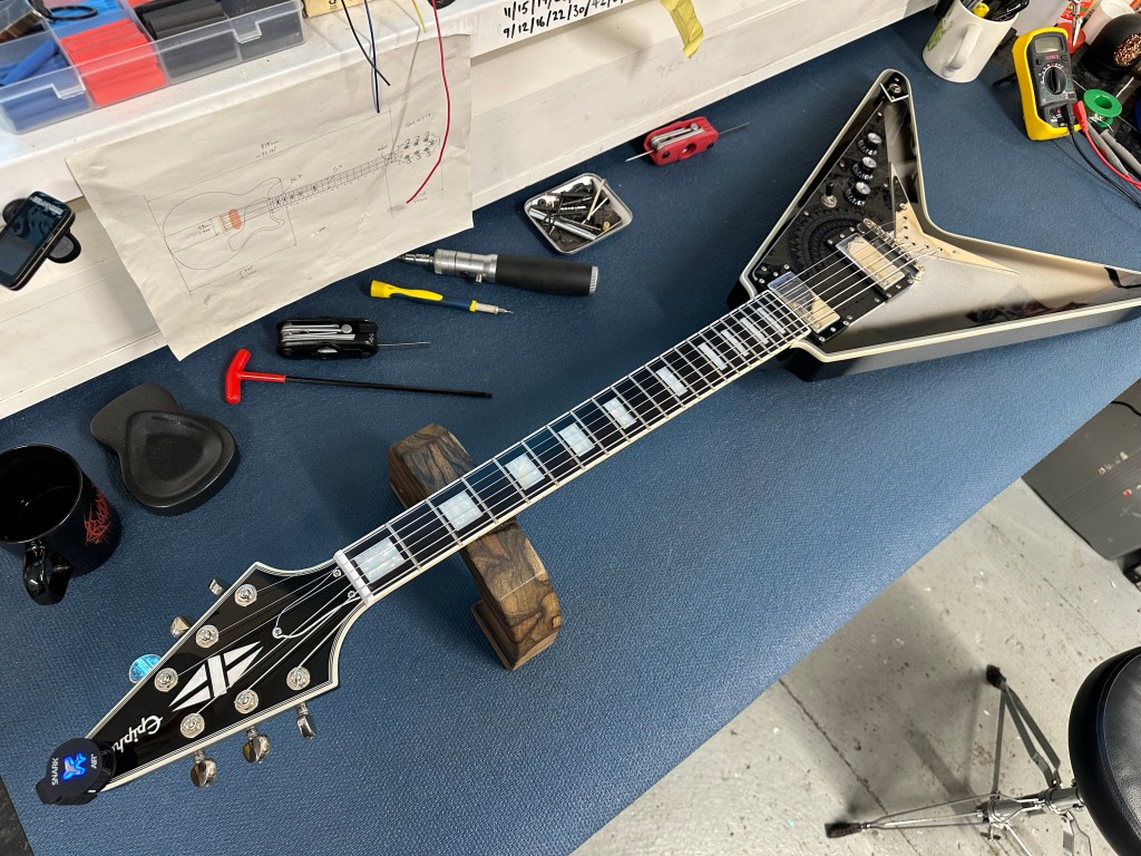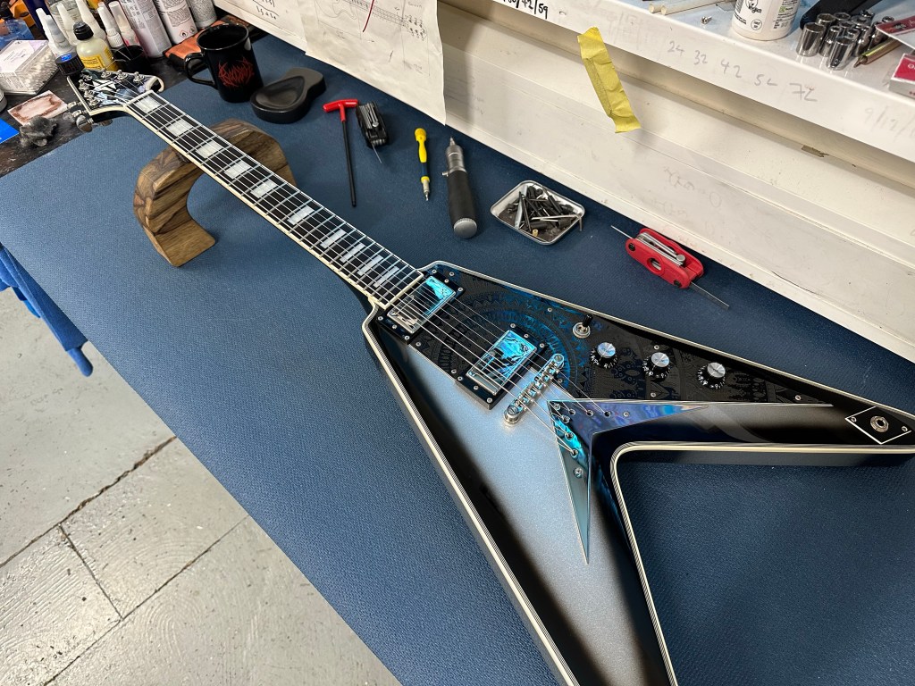 An old mate asked me to service and mod some of his collection. This is about half of it I think and it’s epic. Especially the Epiphone Brent Hinds V – they’re amazing, if you can get your hands on one.
