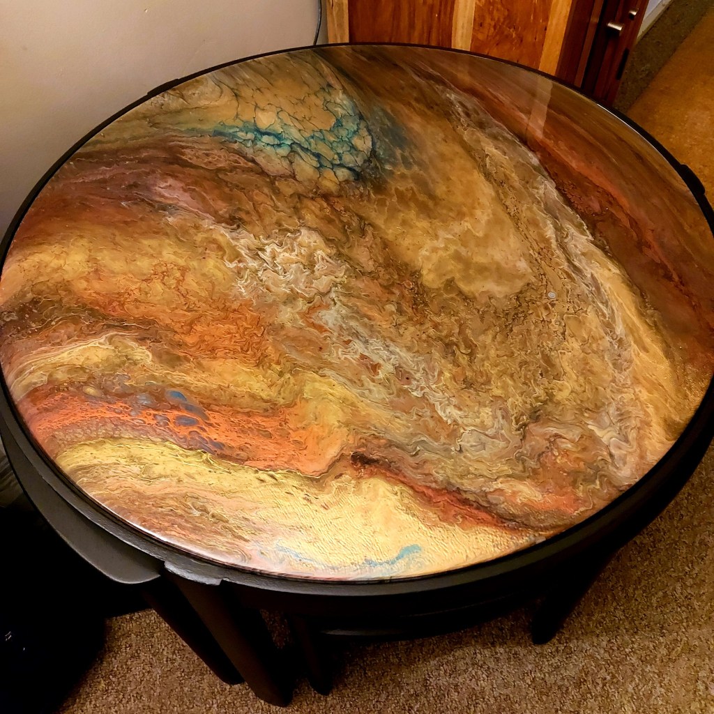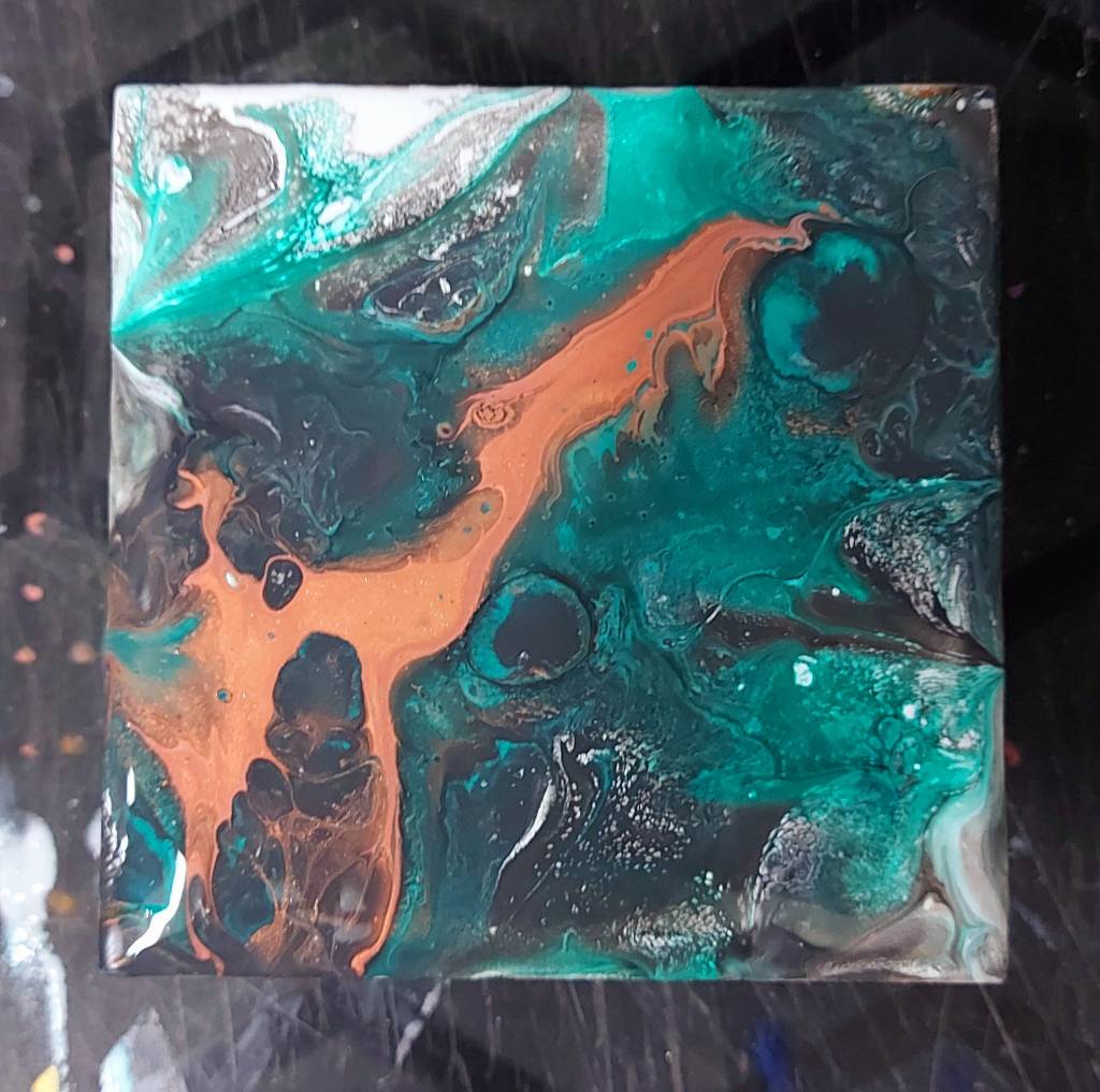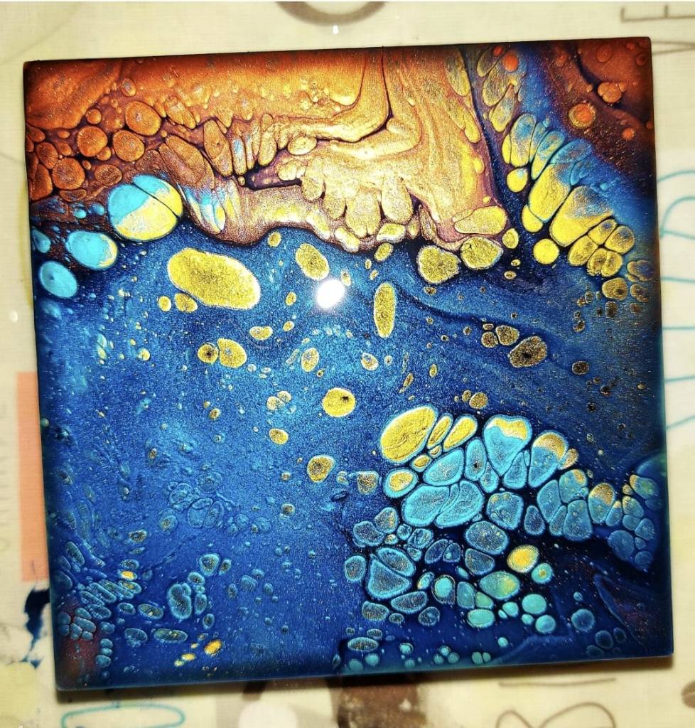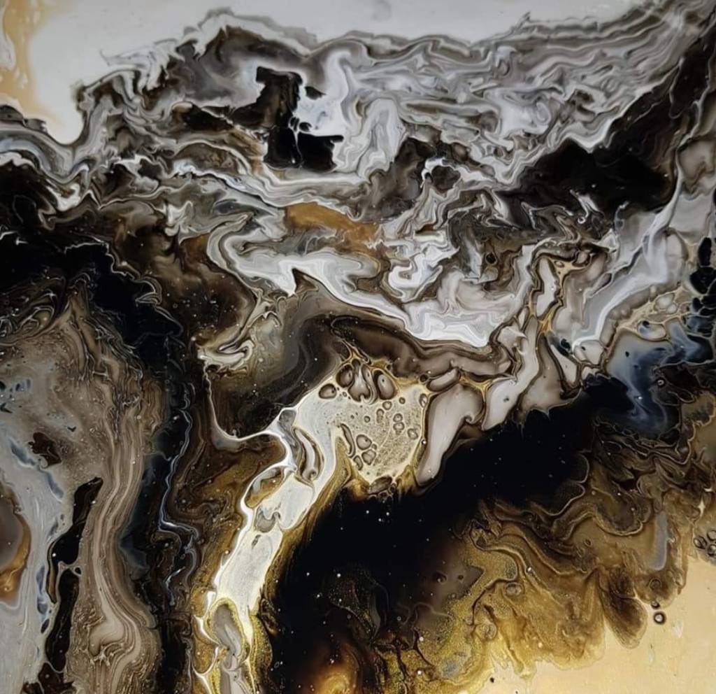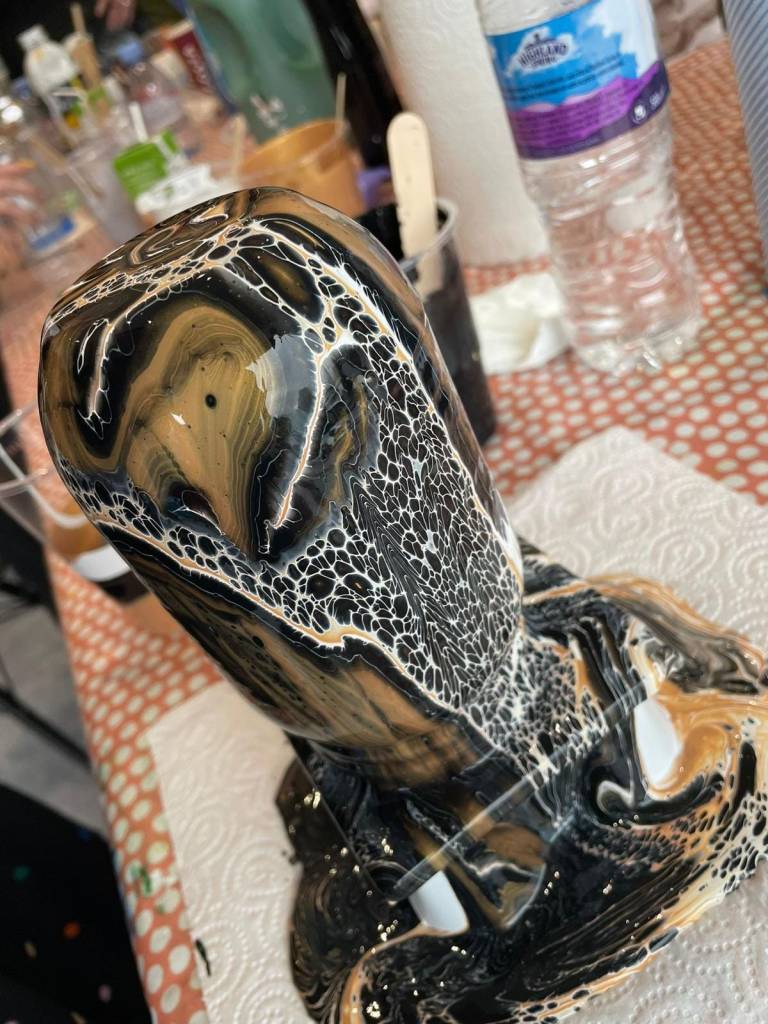 The work is amazing, have a look at the portfolio, and maybe book a session. I certainly will be. As you’ll be able to see from the range of work, Shelly not only works in 2D, but has explored swirly acrylic pours in 3D as well. Tables, vases, baubles, busts and even a deer head.