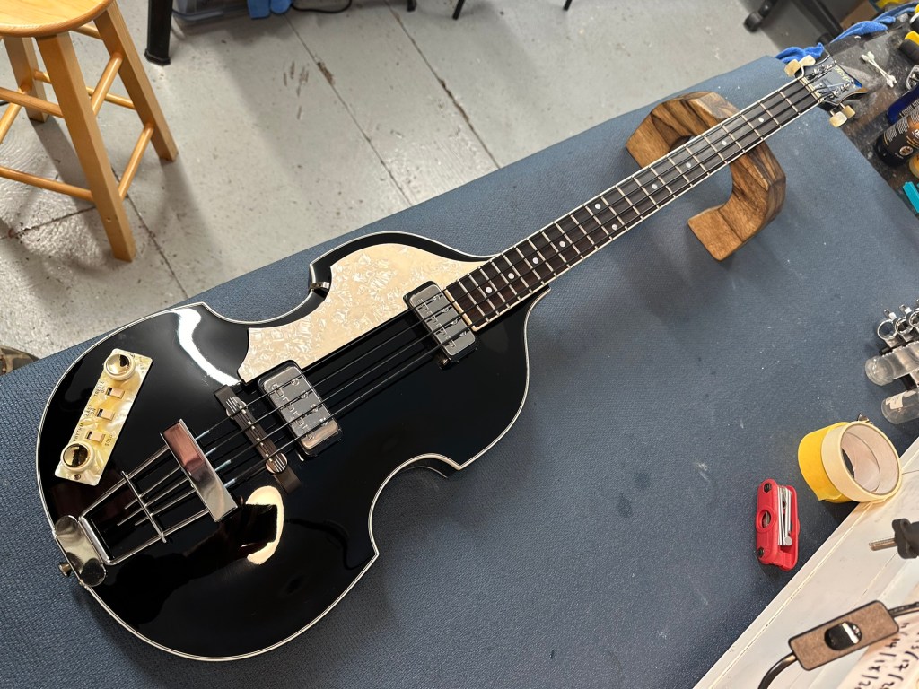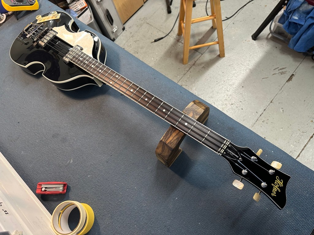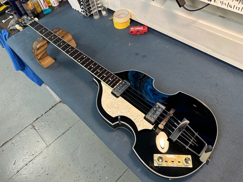McCartney style. Setup with black flatwound strings, installation of a new control board.