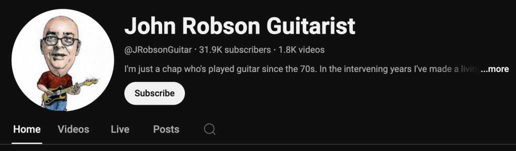 Tune in, at John Robson’s Guitar channel.